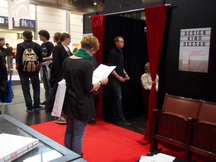 Together with a group of students, Wawro designed and built a cinema to present the design department on the Buch Messe Leipzig.